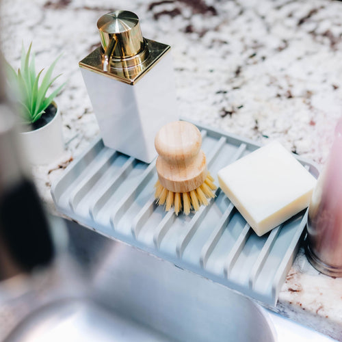 Effilogic Makes Your Life Efficient with Smartly Designed Products, Like this Self Draining Drying Mat Organizer for Utensils, Soap Dispenser, Sponges, Brushes and Baby Items