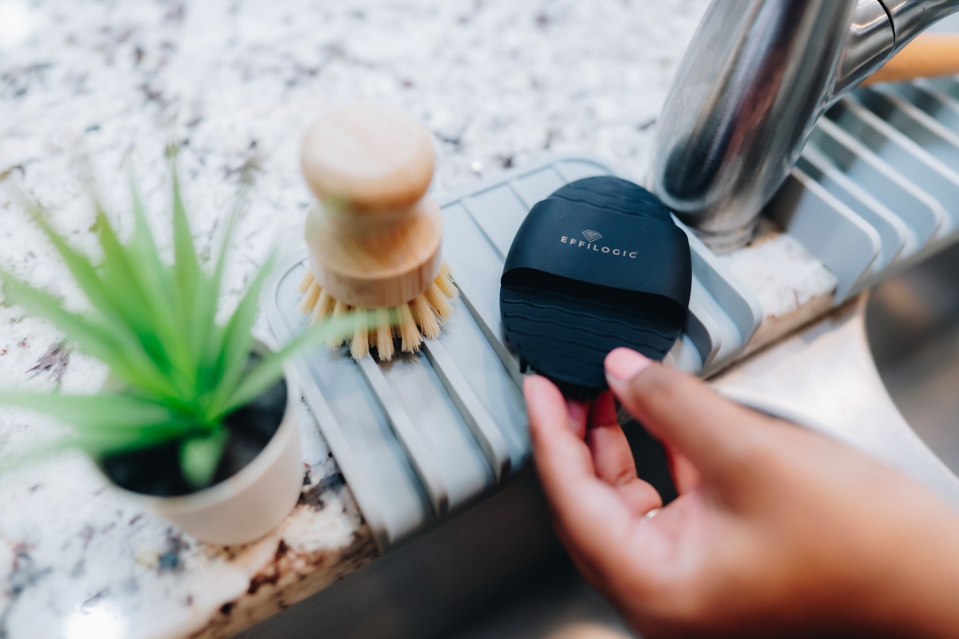 Most sponge holders trap water, leading to the "slime and mildew" you're trying to avoid. Effilogic is different. Our architecturally inspired 4-degree slant uses gravity to ensure water drains directly into your sink, keeping your surfaces dry and your home bacteria-free.